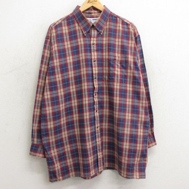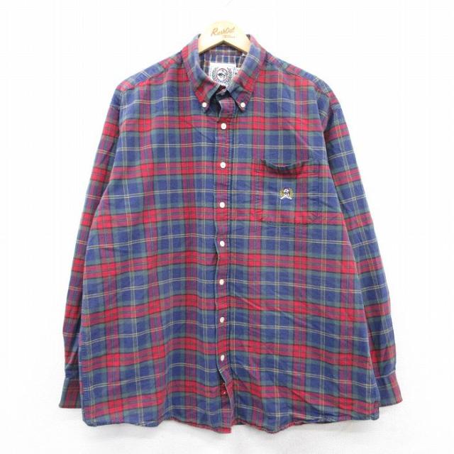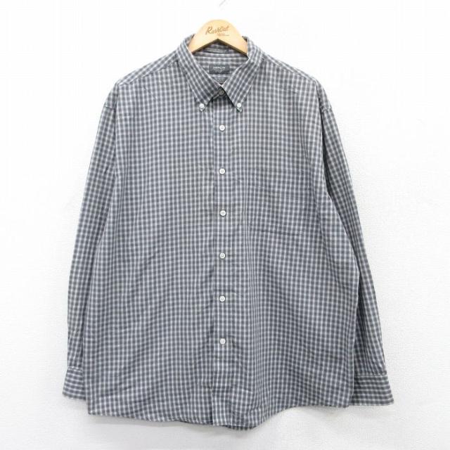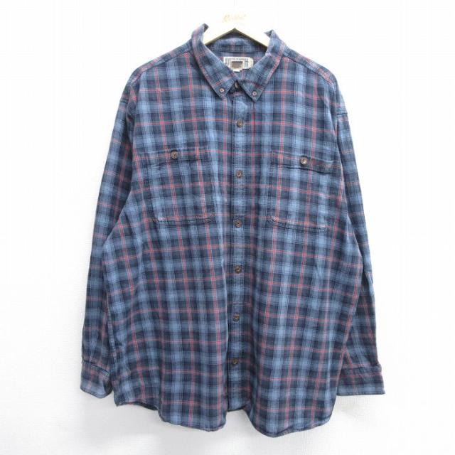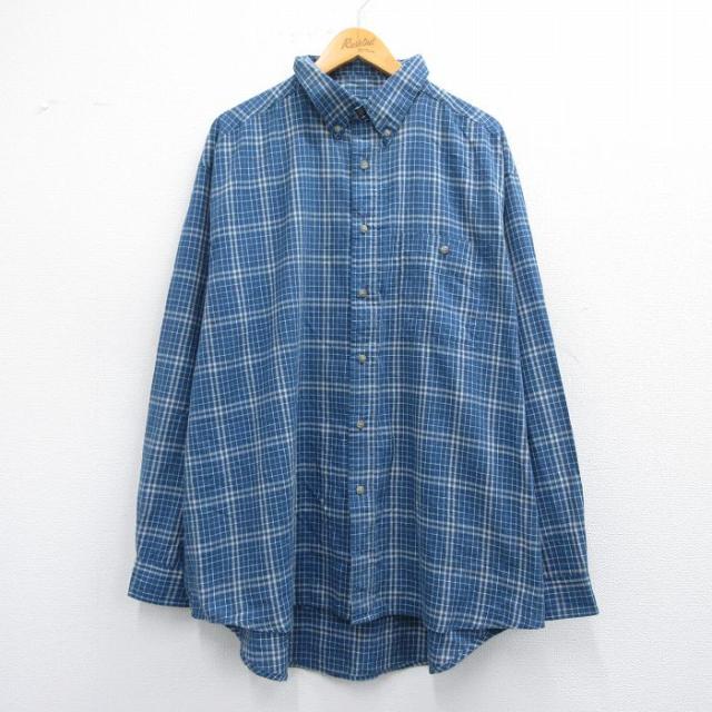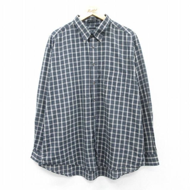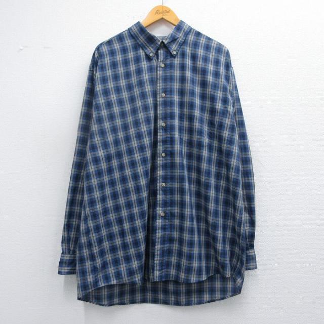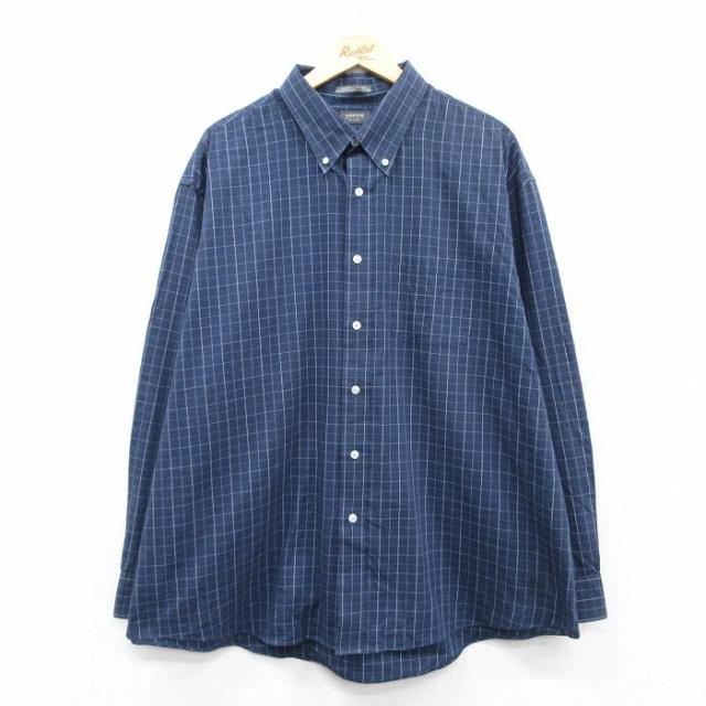 古着 アロー 長袖 シャツ メンズ 大きいサイズ ロング丈 ボタンダウン 紺他 ネイビー チェック XLサイズ 中古 トップス 中古 古着
