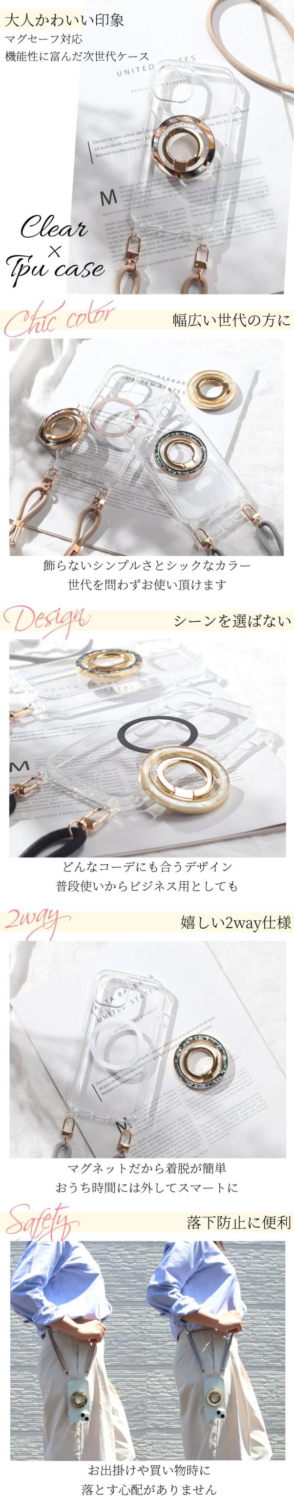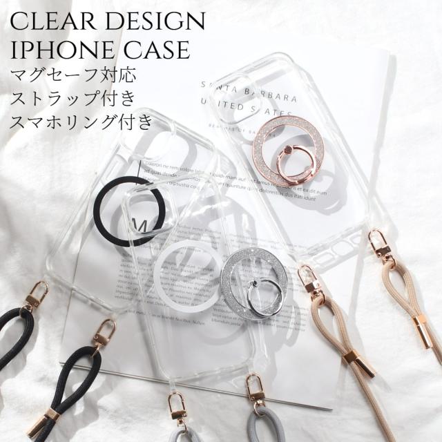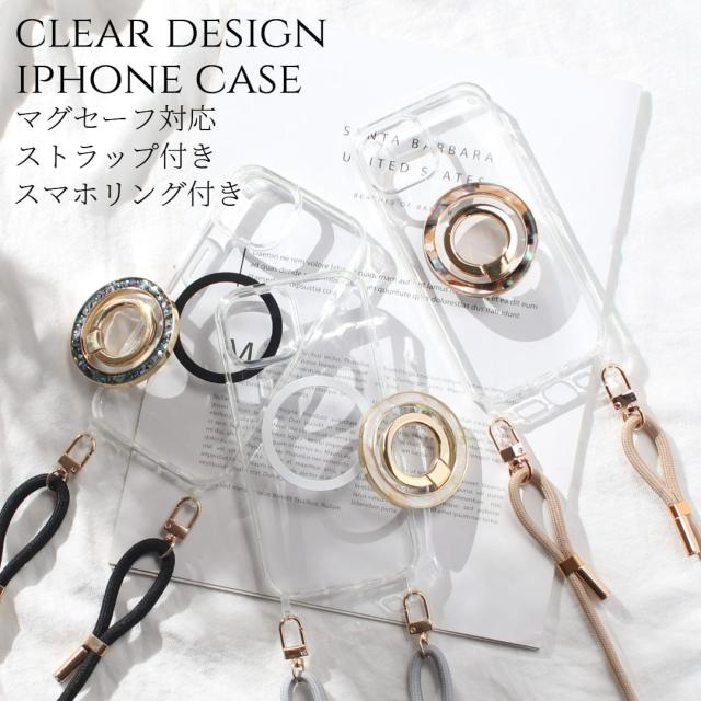 iphone ケース クリア リング付き iphone17 iphone16 iphone15 iphone14 ショルダー ストラップ MagSafe マグセーフ マグネット アイフォン 17 16 15 14 SE リング べっ甲 スタンド 調節可能 17pro 16pro 15pro 肩掛け 斜め掛け ストラップ付き air 13mini se3 透明 送料無料