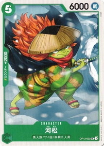 OP12-023 | UC | CHARACTER 河松 コスト5 属性 斬 パワー6000 カウンター2000 色 緑 ブロックアイコン 3 特徴魚人族/ワノ国/赤鞘九人男 テキスト - 入手情報 師弟の絆【OP-12】