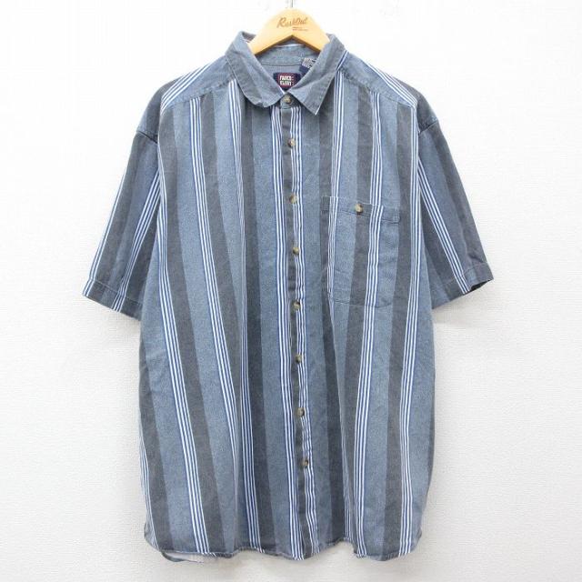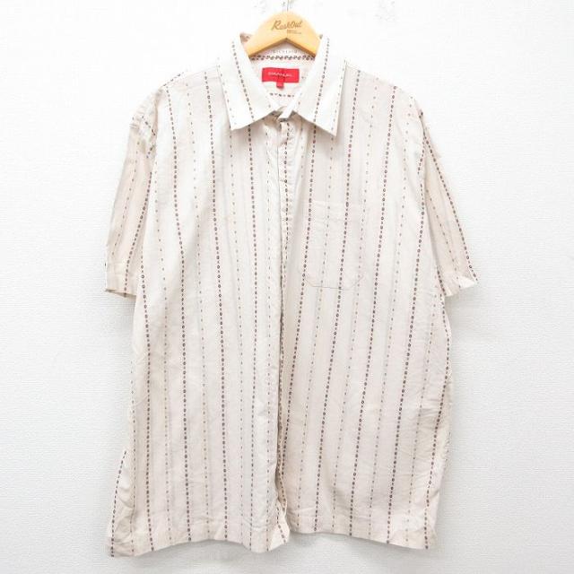 古着 半袖 シャツ メンズ 大きいサイズ コットン 薄ベージュ他 カーキ ストライプ XLサイズ 中古 トップス 中古 古着