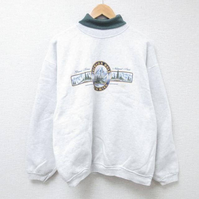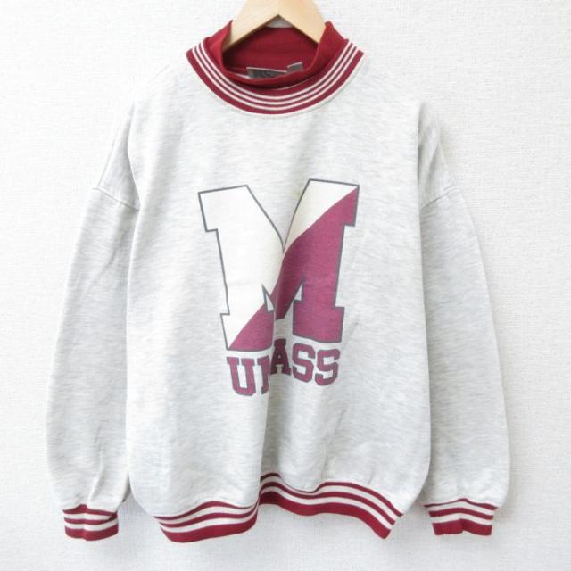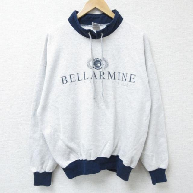 古着 長袖 スウェット メンズ 90年代 90s ベラ—マイン カレッジ モックネック ハイネック 薄グレー 霜降り XLサイズ 中古 ス 中古 古着