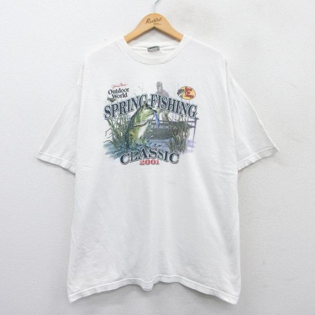 【商品名】 XL★古着 半袖 ビンテージ Tシャツ メンズ 90年代 90s 釣り 魚 大きいサイズ コットン クルーネック USA製 白