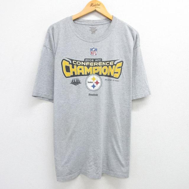 【商品名】 XL★古着 リーボック 半袖 ビンテージ Tシャツ メンズ 00年代 00s NFL ピッツバーグスティーラーズ 大きいサイズ クルーネック グレー 霜降り アメフト スーパーボウル