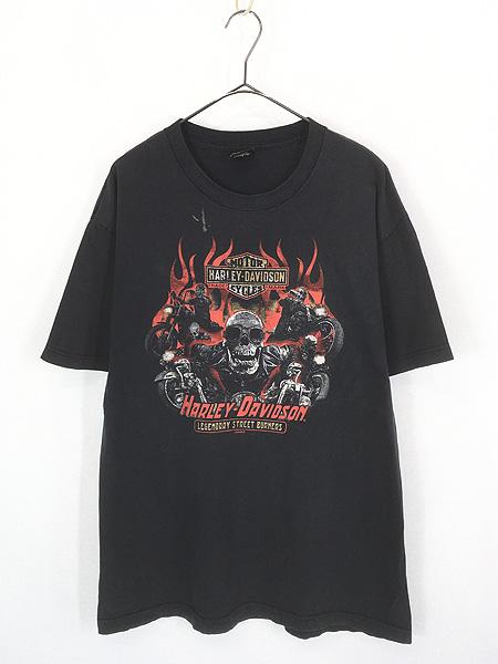 古着 10s HARLEY DAVIDSON バイカー スカル ファイヤー グラフィック Tシャツ XL 古着