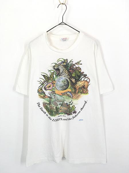 古着 90s USA製 地球 ヒョウ ライオン カメ おさかな マルチ アニマル Tシャツ XL 古着