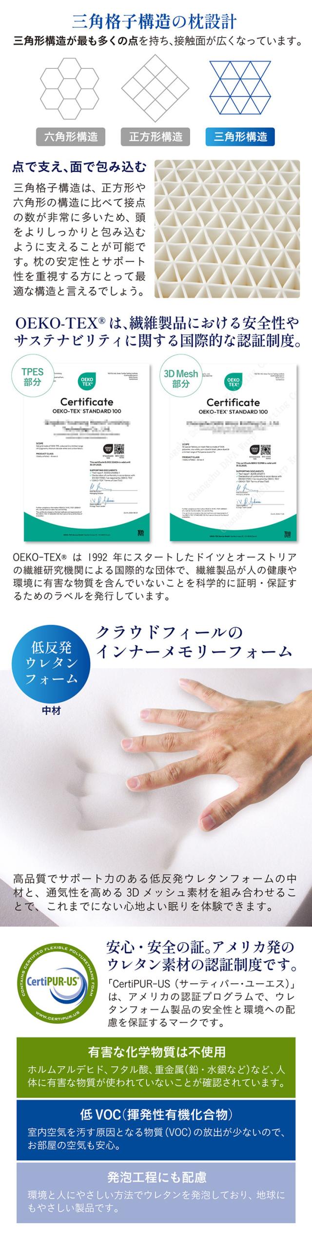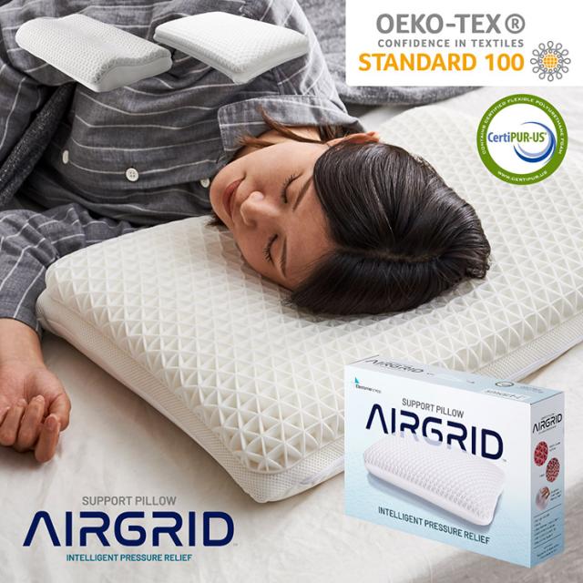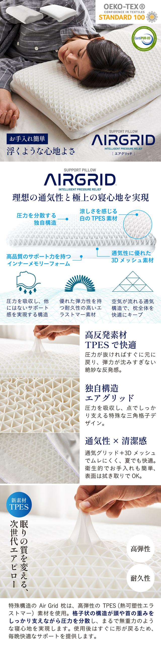 寝具 快眠 枕 高反発 低反発 ハイブリッド 2way 横向き 仰向け対応 通気性抜群 エアグリッド 三角格子構造 3Dメッシュ ウレタンフォーム 洗えるカバー Air Grid Pillow エアグリットピロー 快適 寝返りサポート フラット