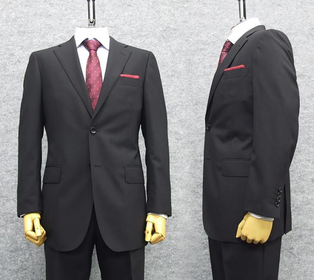 春夏物 2パンツ ベーシック2釦スーツ 黒/ストライプ メンズスーツ [A体] RG9103A
