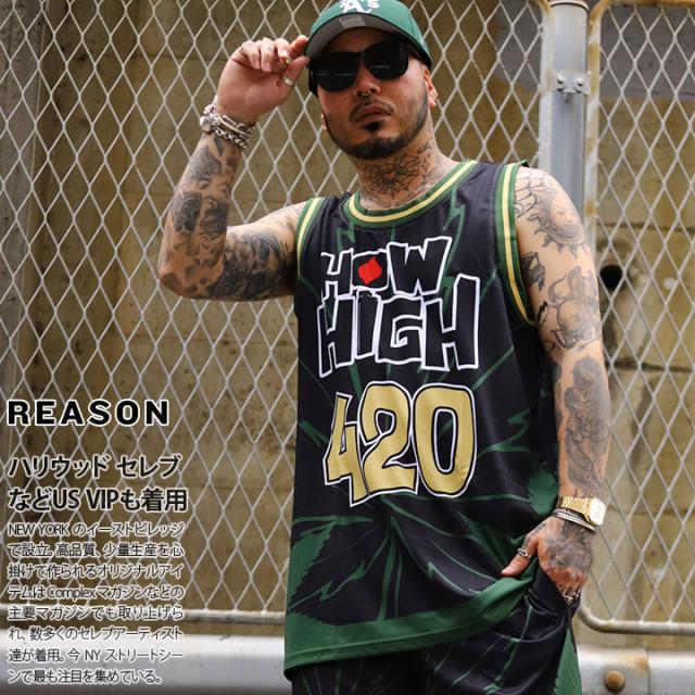 REASON × HOW HIGH ノースリーブ メンズ 黒 ハウ ハイ 映画 ビー・バッド・ボーイズ コラボ 公式 リーズン バスケットシャツ バスケシャツ タンクトップ ビッグシルエット b系 ヒップホップ ファッション ストリート系 ブランド 服 2025夏 RR5067