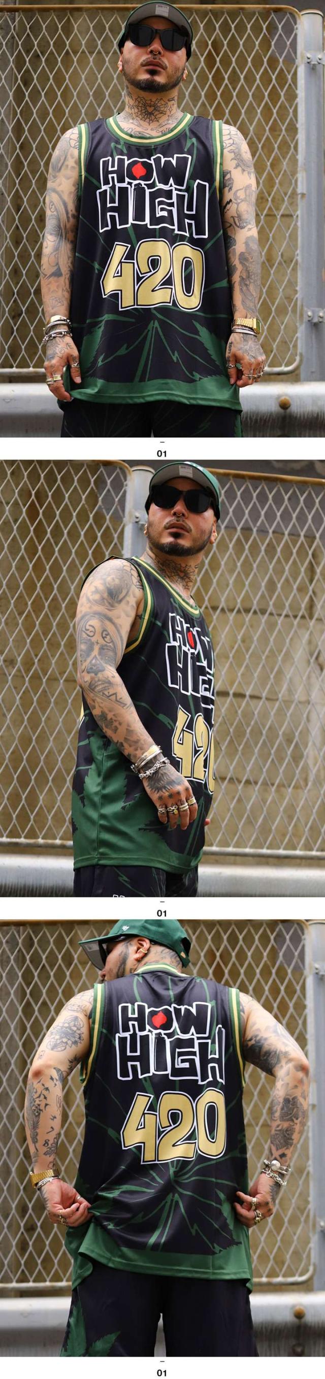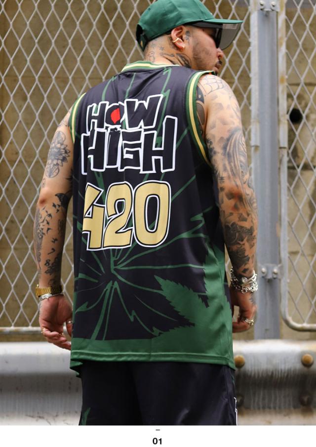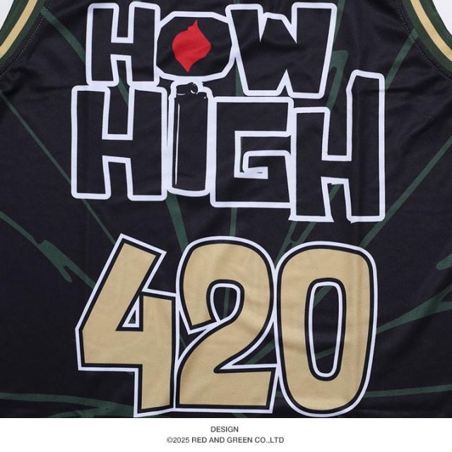 フロントには、マリファナ柄を背景に映画『HOW HIGH』をフューチャーしたスポーティーなロゴをオン。ナンバー420はマリファナを意味しています。