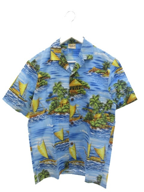 【中古】ロイヤルクリエーションズ Royal Creations アロハシャツ ハワイアンシャツ 半袖 S ブルー系 総柄