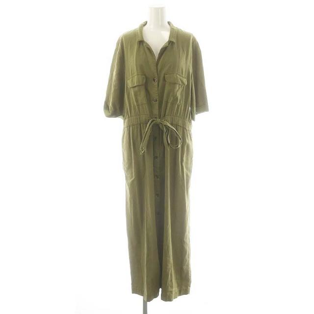 【中古】ザラ ZARA ショートスリーブ シャツワンピース ロング L カーキ /HK ■OS レディース