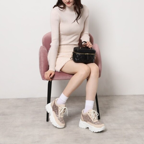 ソール自体もボリュームがありますが、インヒールもしっかり入っており、バレずにスタイルアップでき、美脚&脚長効果がうれしい厚底シューズ!