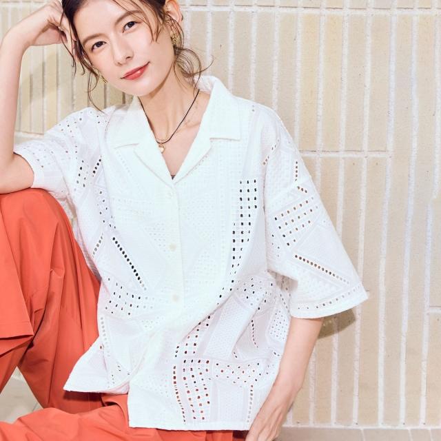 ●ボイル生地に繊細な刺繍を施した、涼しげな印象のエンブロイダリーレースシャツ