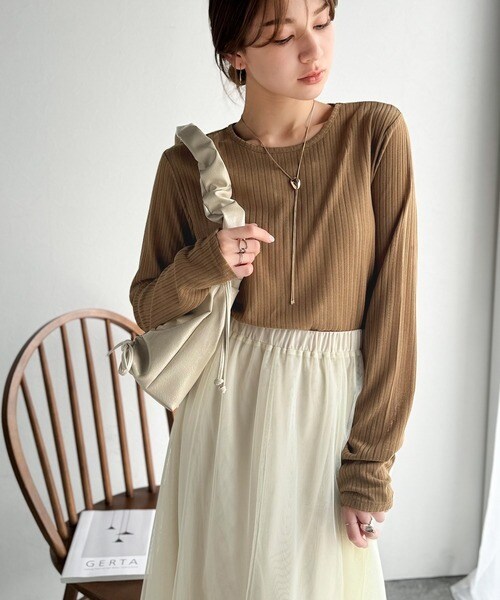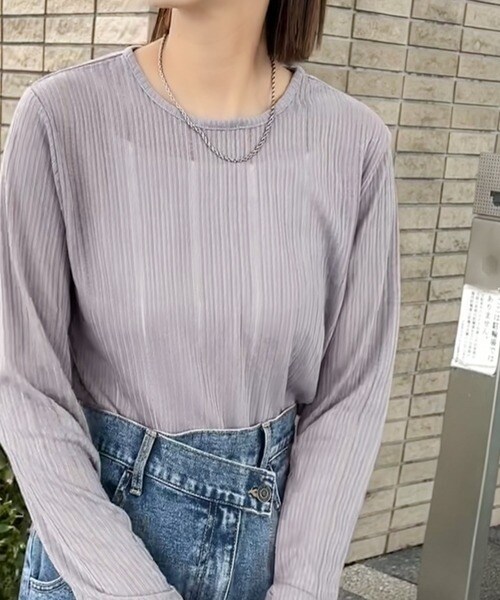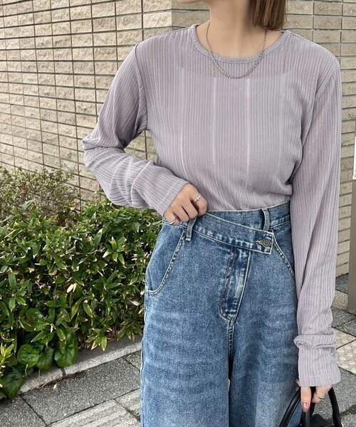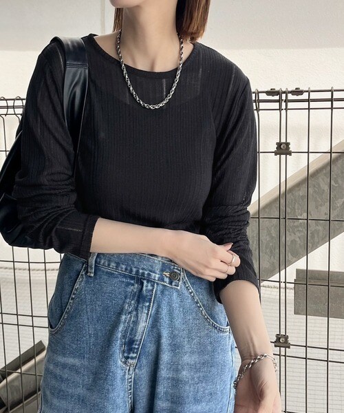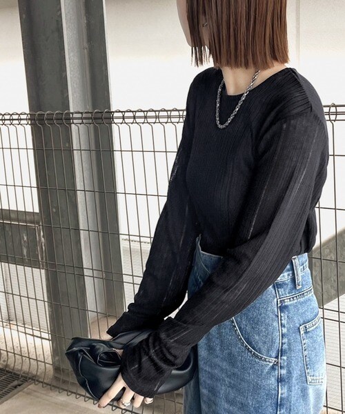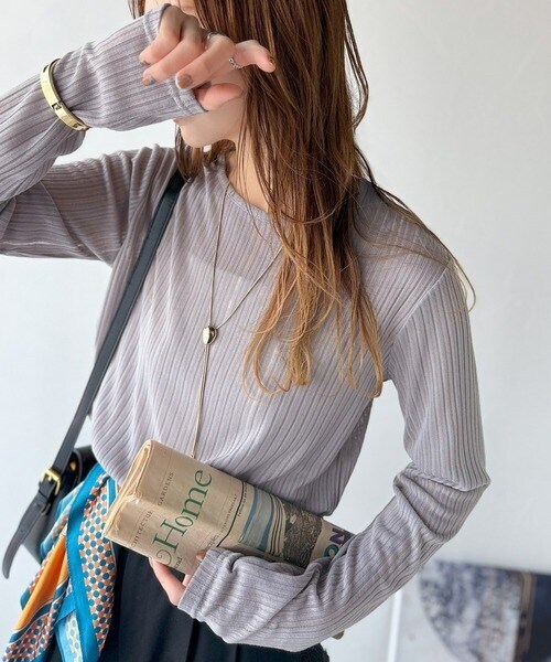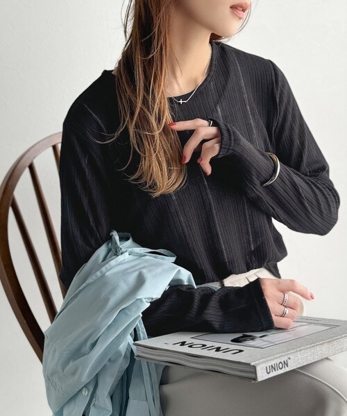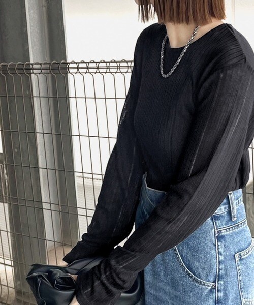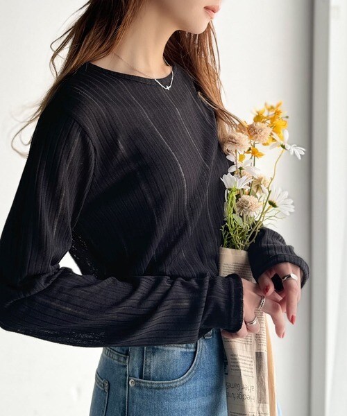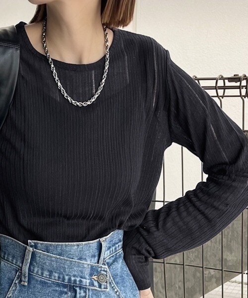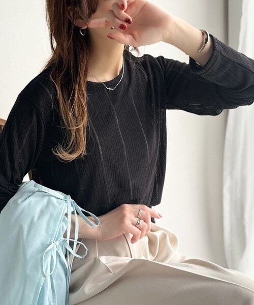 程良い透け感と縦ラインが美しいリブ編みが特徴の、大人が着たいシアートップスが