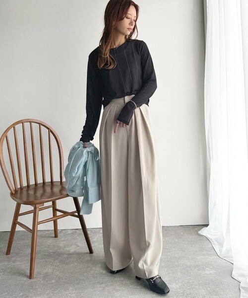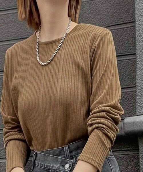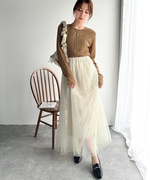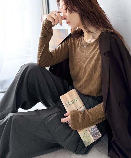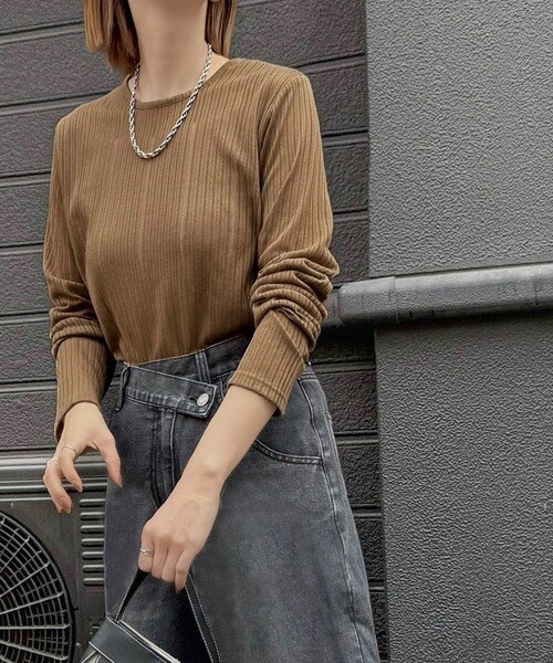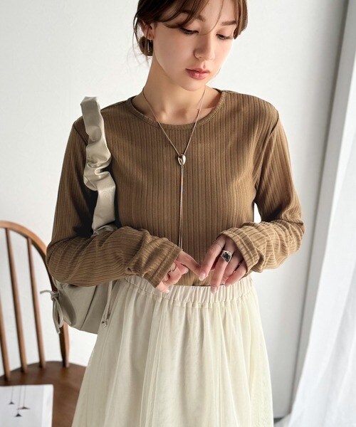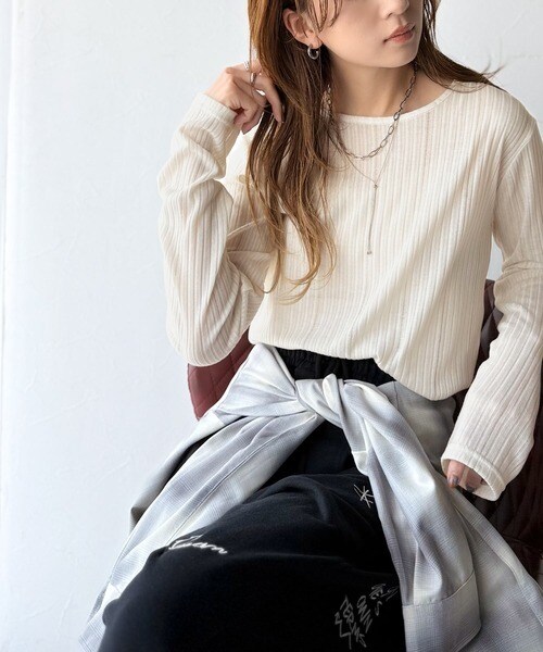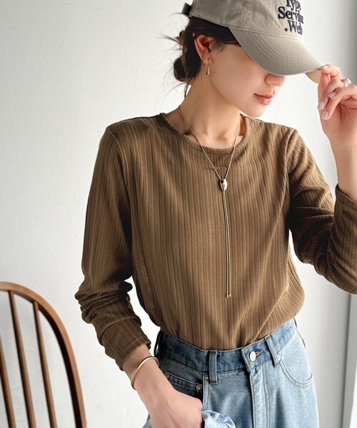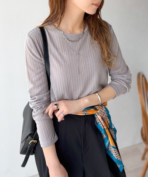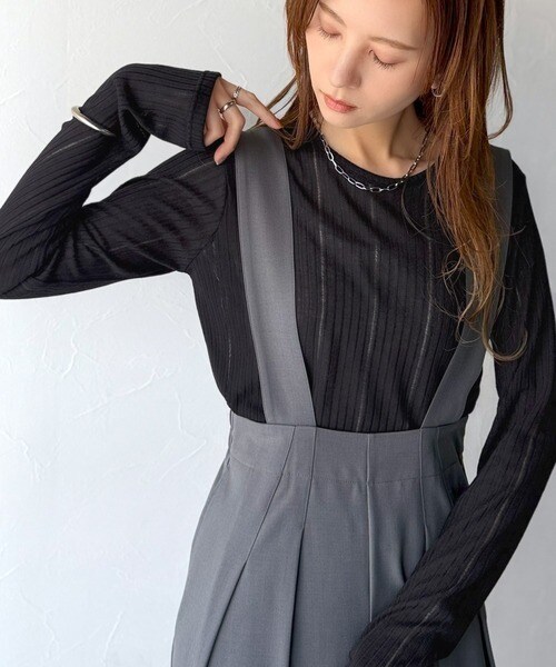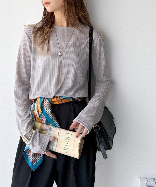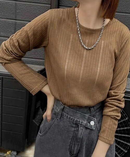 程良い透け感と縦ラインが美しいリブ編みが特徴の、大人が着たいシアートップスが