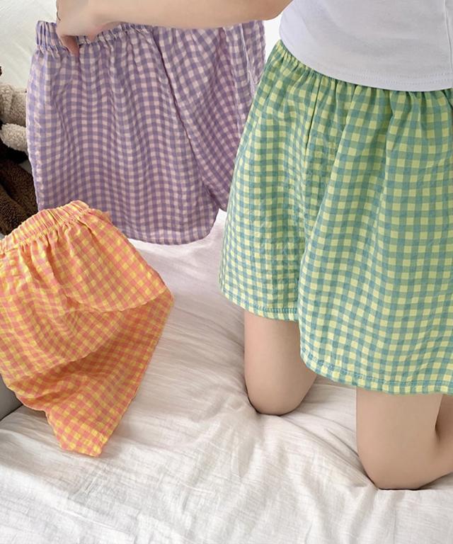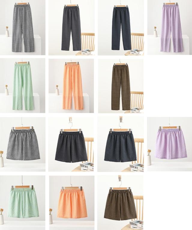 夏にぴったりな軽やかチェック柄パンツ、ショートとロングの2タイプから選べる。