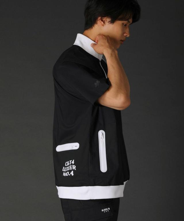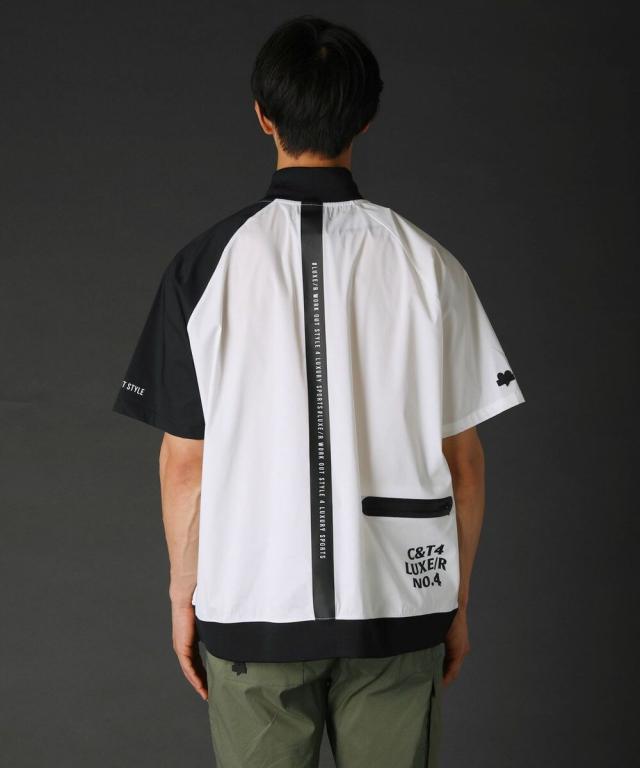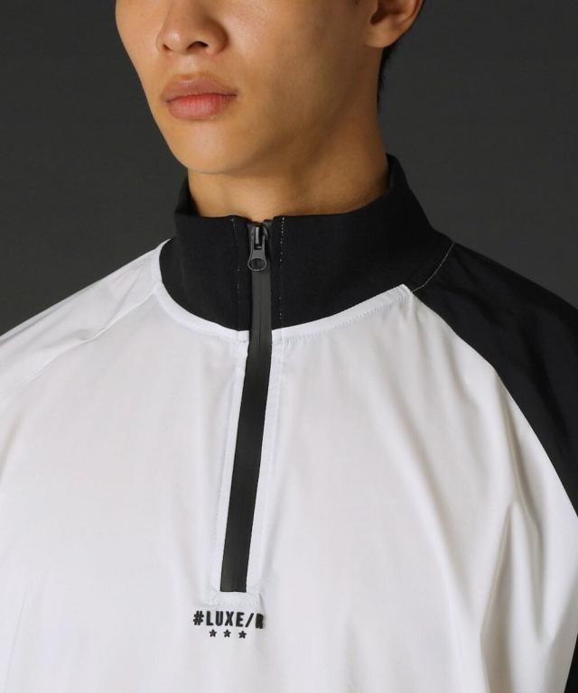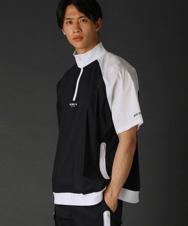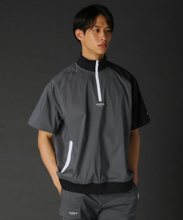 レジェス(REZES)/R/撥水加工コットンナイロンストレッチ布帛ハーフジップ止水ジップ半袖プルオーバー