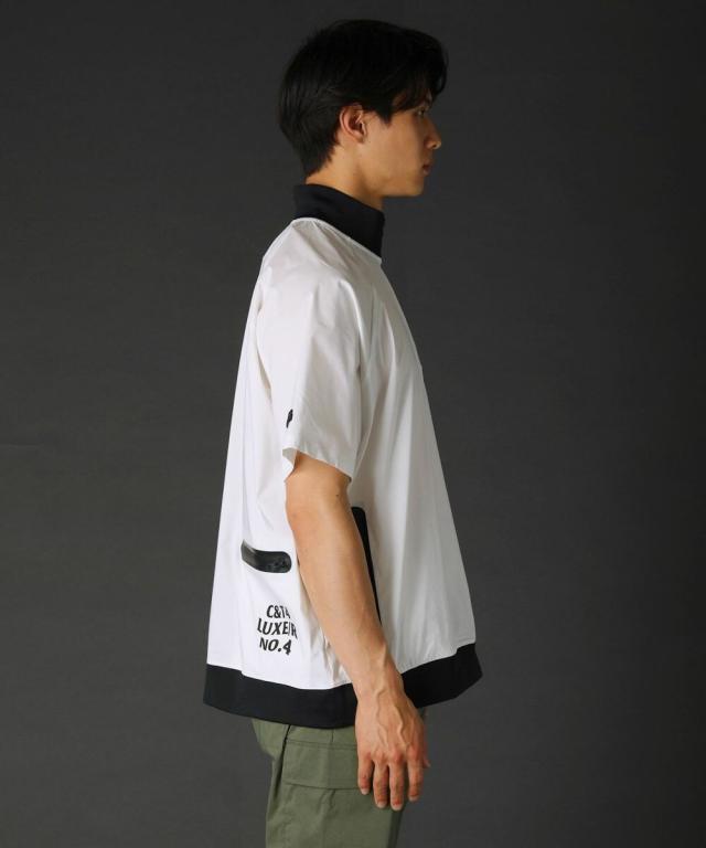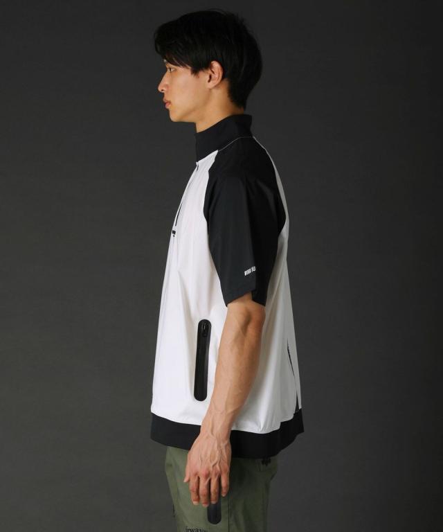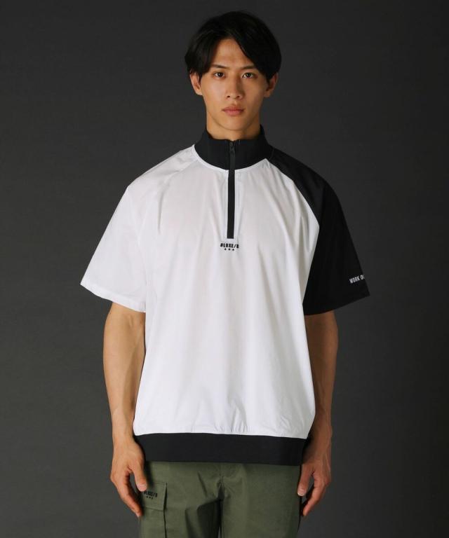 R/撥水加工コットンナイロンストレッチ布帛ハーフジップ止水ジップ半袖プルオーバー