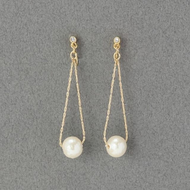 繊細なチェーンに揺れる一粒のパールが、お顔周りを女性らしく華やかに仕上げてくれるデザイン♪