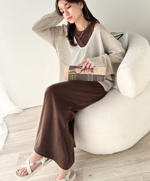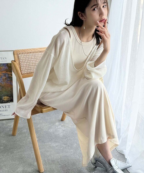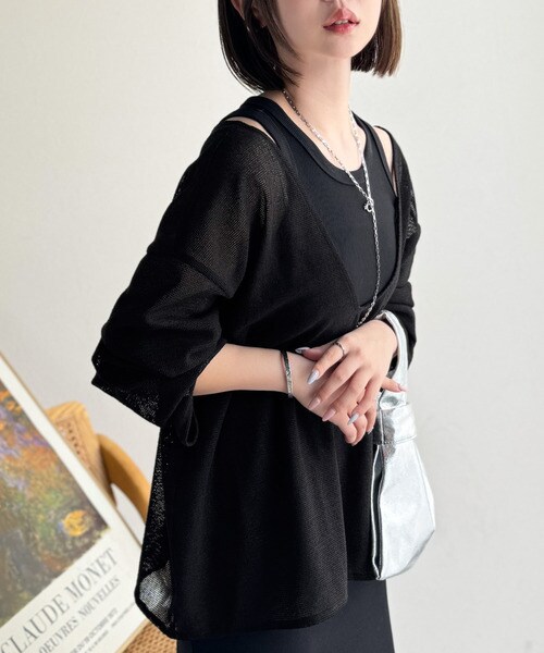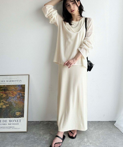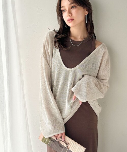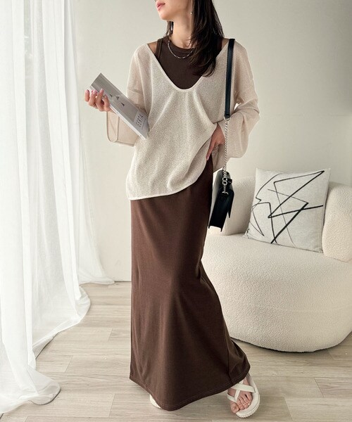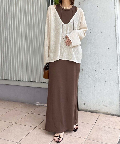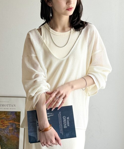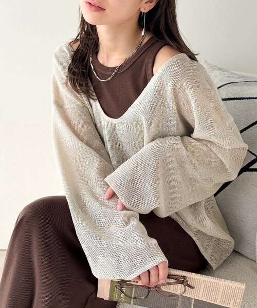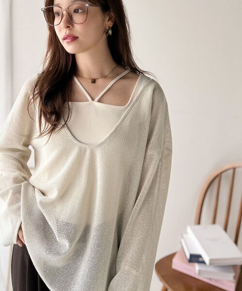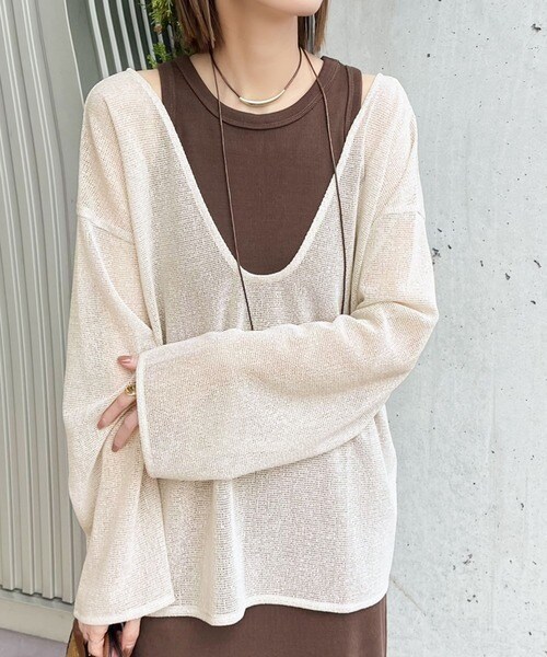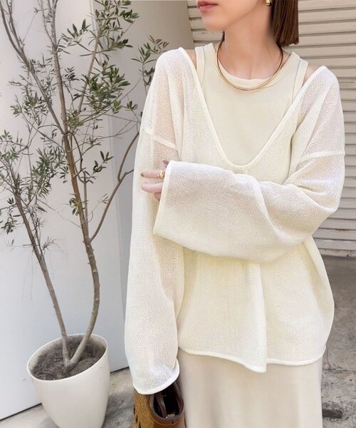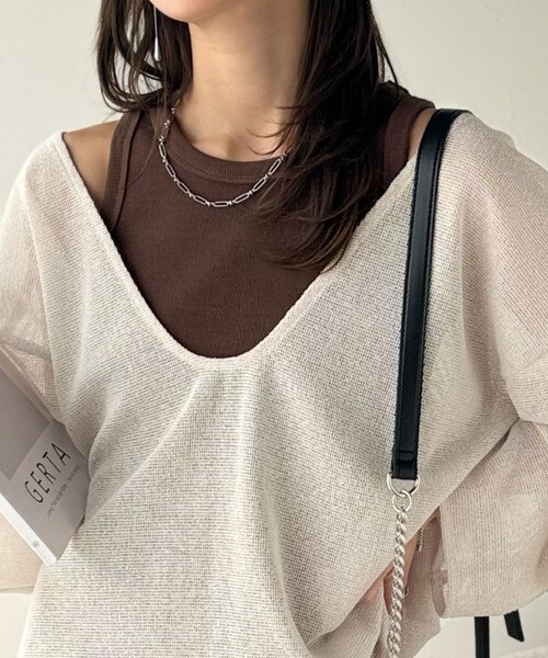 タンクトップやキャミソールと合わせたレイヤードスタイルで、
