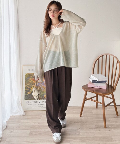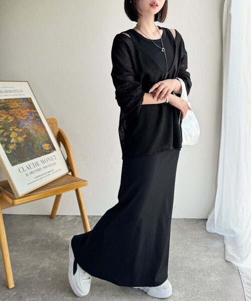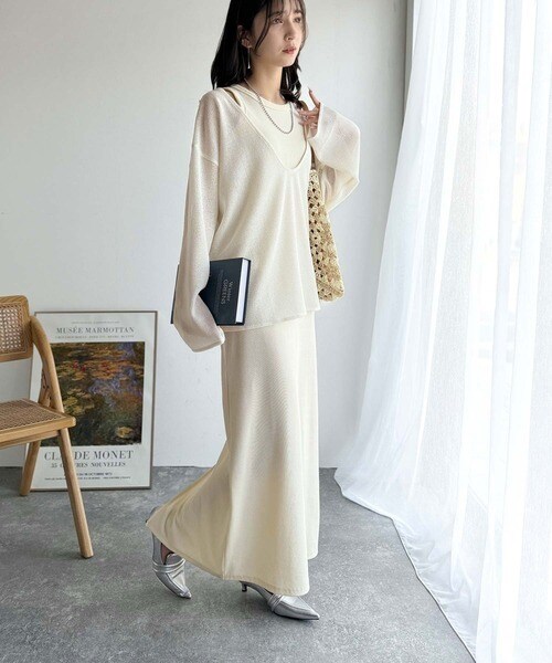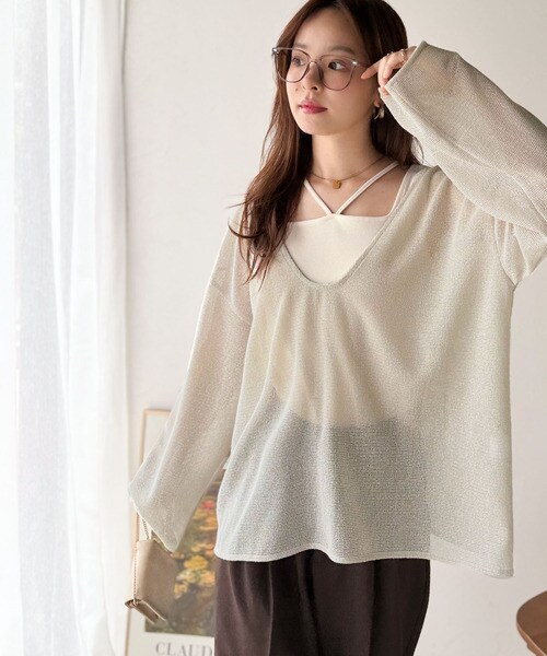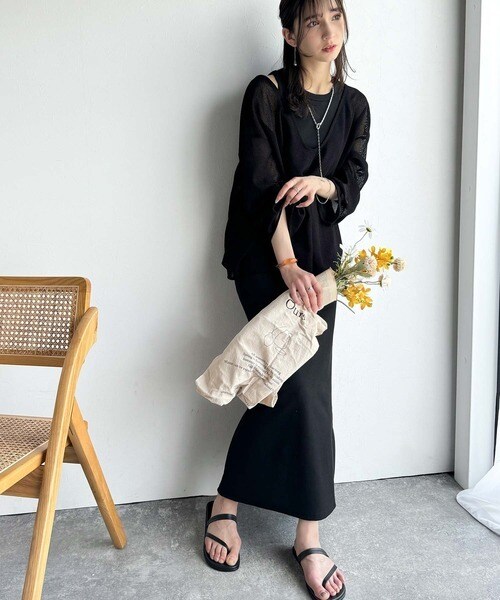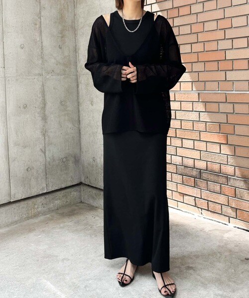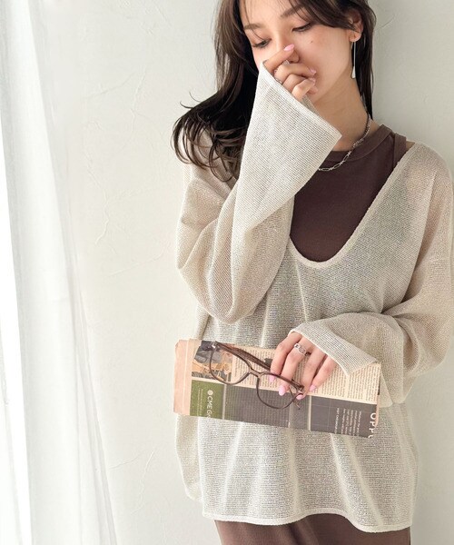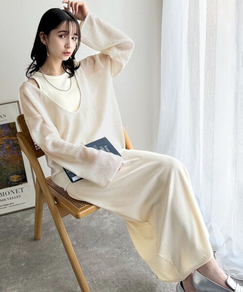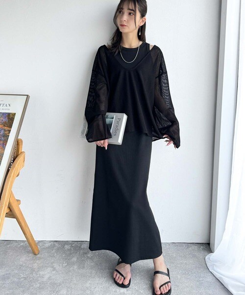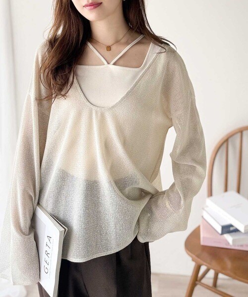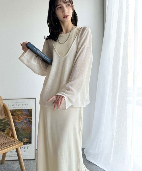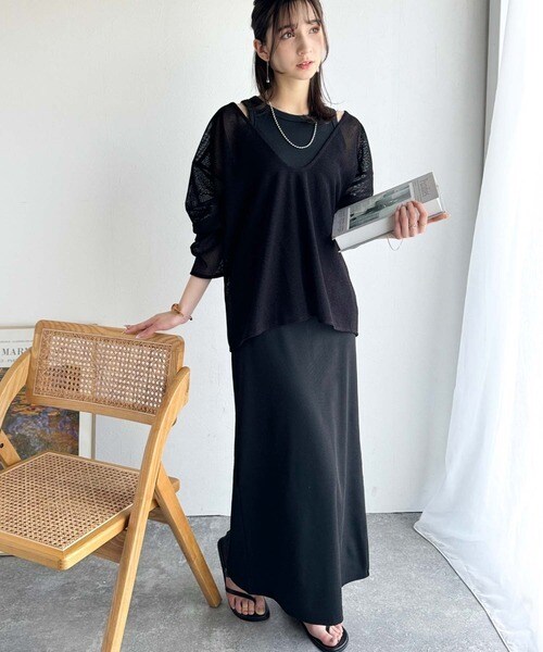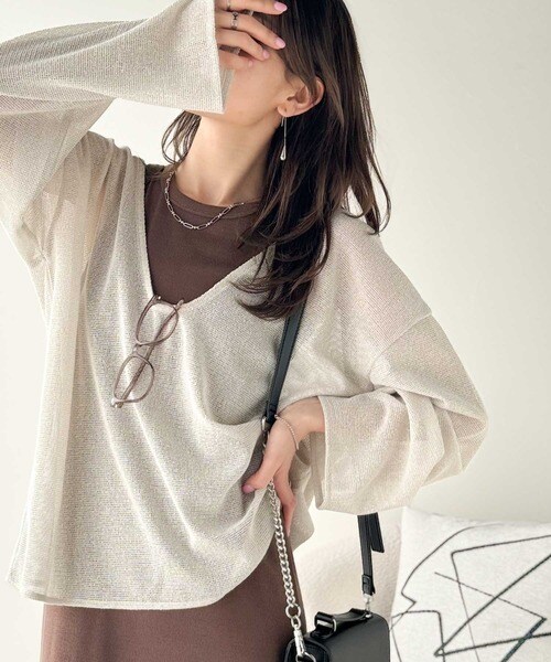 タンクトップやキャミソールと合わせたレイヤードスタイルで、