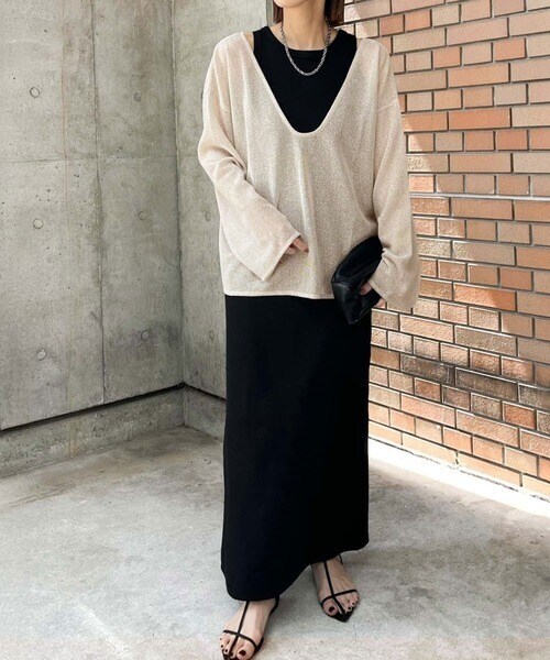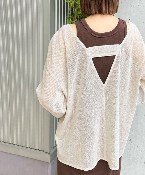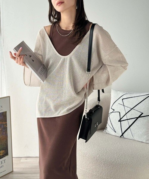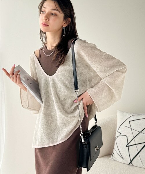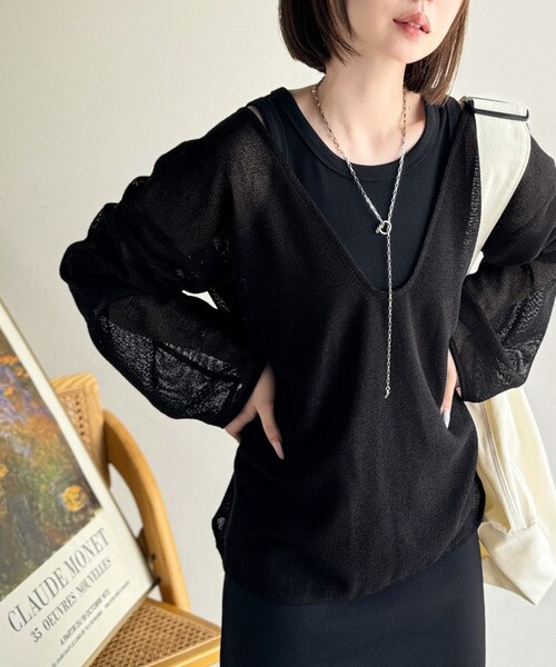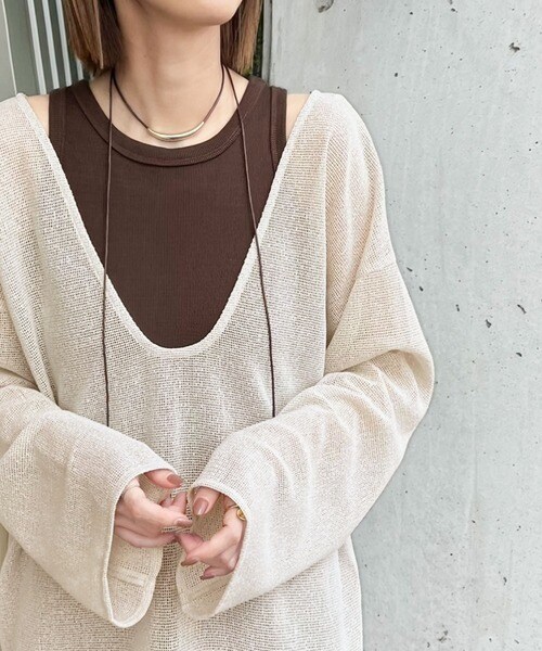 ざっくりと開いた深めのUネックで、顔まわりをすっきり見せ