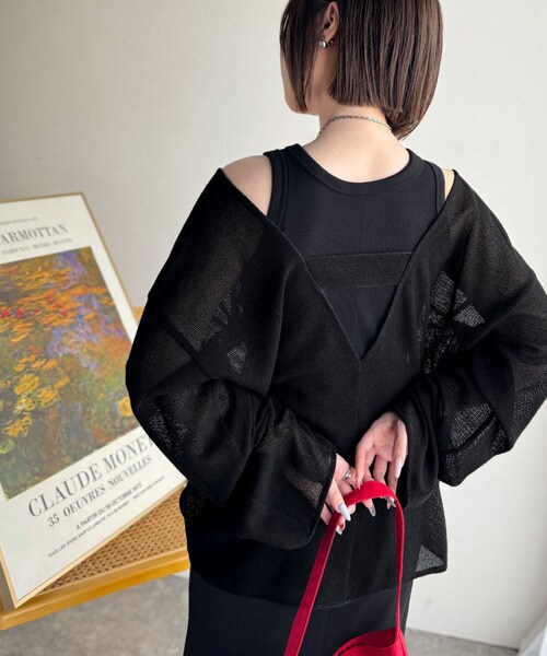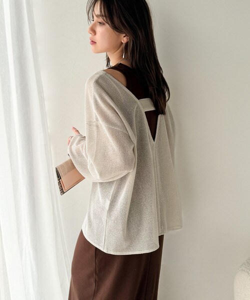 クラシカルエルフ(Classical Elf)/《sayo×クラシカルエルフコラボ》いつもの服に+1。深Uネックバックベルトメッシュトップス