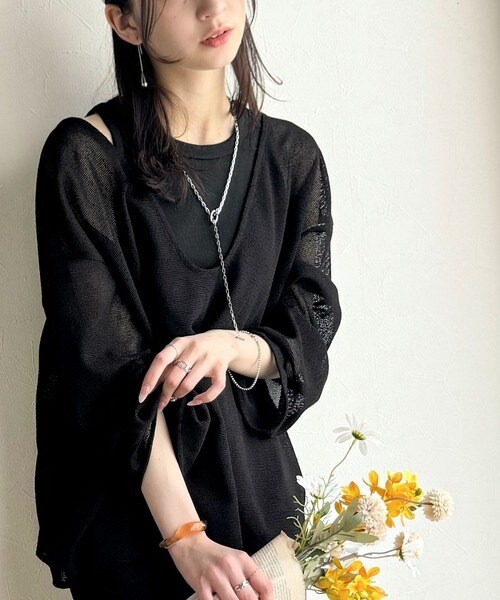 《sayo×クラシカルエルフコラボ》いつもの服に+1。深Uネックバックベルトメッシュトップス