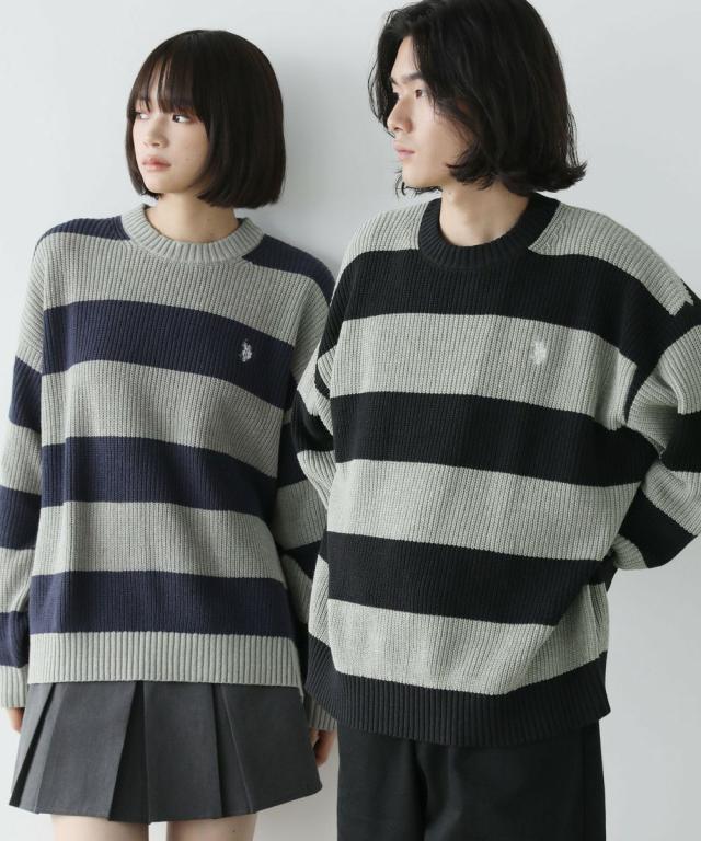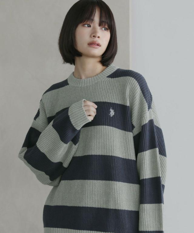 U.S.POLO ASSN.別注 畦編み太ボーダーニット