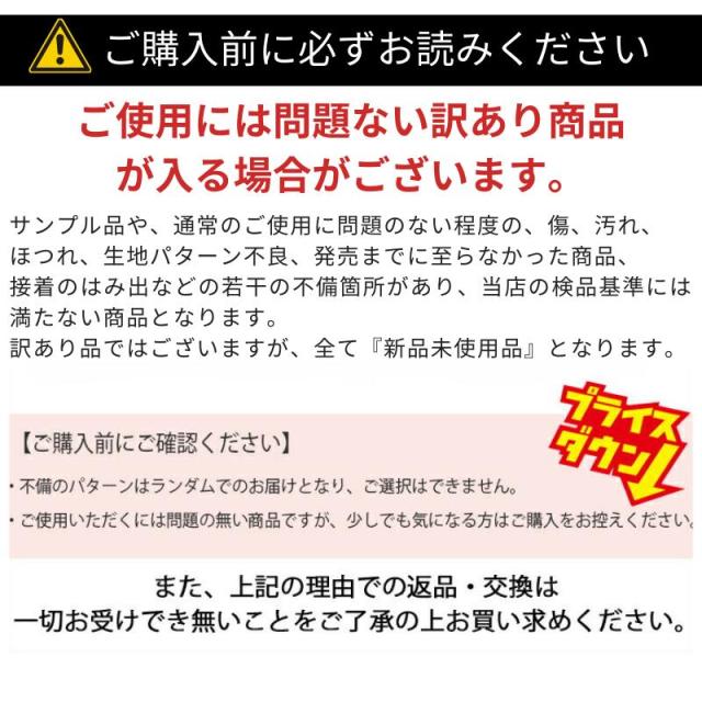 サンプル品や、通常のご使用に問題のない程度の、傷、汚れ、ほつれ、生地パターン不良、発売までに至らなかった商品、