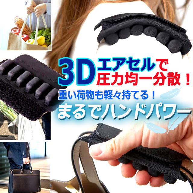 バッグの持ち手の圧力分散!3Dエアセル軽っと楽クッション エコバッグ 買い物バッグ ショルダートート 手提げ レジ袋 重い荷物 鞄 丈夫 巻くだけ