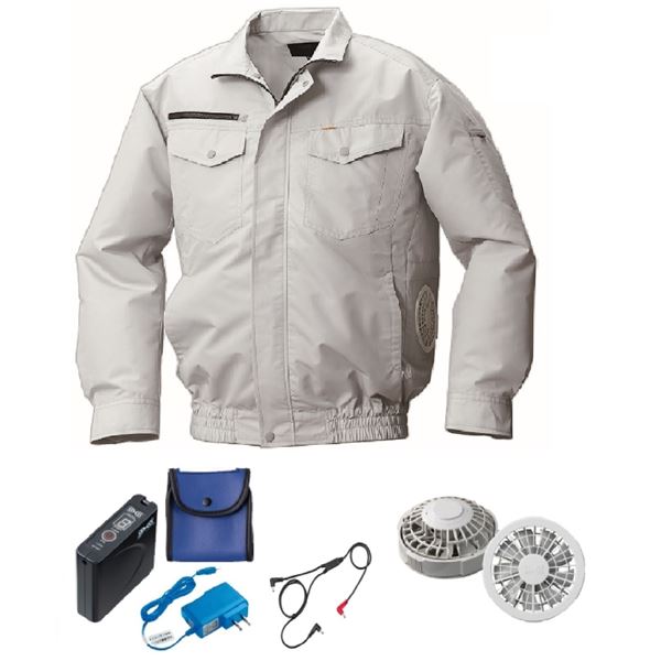 KU92030 空調服 R 綿・ポリ混紡 横ファン FAN2200G・CBB500ロングケーブル・LISUPER1セット シルバー 5L