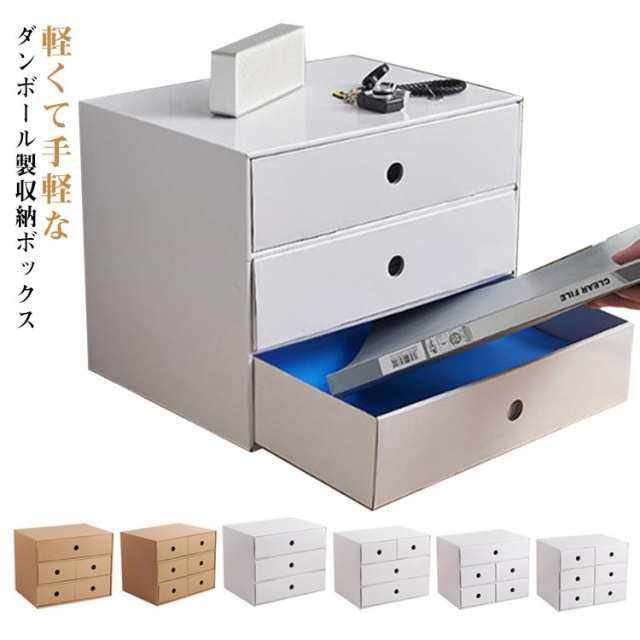 カラーボックス 引き出し 収納ボックス ダンボール 段ボール 3段 引き出し収納ケース クラフトボックス 小物収納 縦置き 卓上 簡単組み立て 引き出し型 インナーボックス
