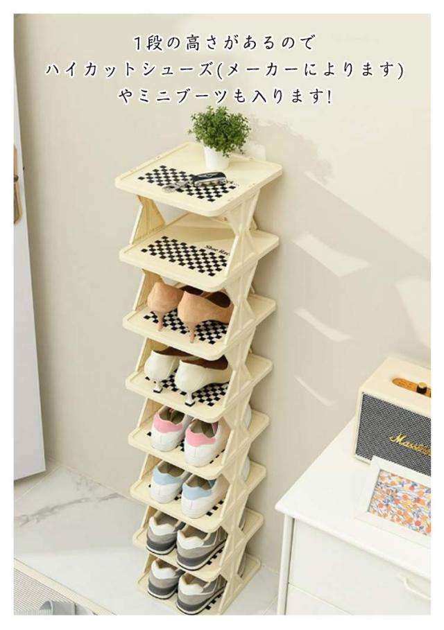 | 【3段~5段シューズラック】【スリム・省スペース】 壁側にぴったりと設置できるので、玄関のスペースを取らずに無駄なく収納できます。縦の空間を生かせるので、効率よく設置して頂けます。 スチール製パイプで丈夫、安定したデザイン。省スペースタイプです。 1段の高さがあるのでハイカットシューズ(メーカーによります)やミニブーツも入ります! 工具不要なので各パーツを差し込むだけで組み立てられます。組み立てや工具が苦手な方も安心です。 泥や土で汚れてもサッと拭きとることができます。拭き取るだけでお掃除できるのでいつまでも清潔を保ちます。 扉の無いシューズラックなので、お出かけの際は靴をサッと取り出すことができます。 風通しが良いので、カビやニオイの原因となる湿気が留まりにくいのが特徴です。蒸れやすい脱ぎたての靴も気にせずに安心して収納できます。 玄関のスペースを有効活用して、限られた広さでも靴をスッキリと片付けることができます。 | |