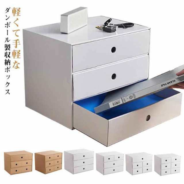 卓上 引き出し 引き出し収納ケース ダンボール 段ボール 3段 小物収納 クラフトボックス 縦置き 収納ボックス 引き出し型 簡単組み立て