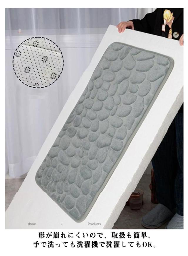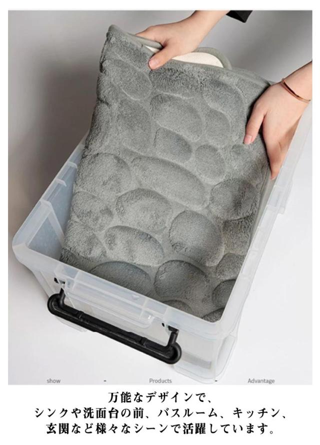 | 柔らかくて肌触りが良い!吸水性と速乾性に優れた次世代バスマット。 吸水性、速乾性抜群!ソールに滑り止め加工でずれにくい。 柔らかく収納がしやすくて便利!メモリーフォーム 低反発ふかふかで気持ちの良い触り心地。 足の疲れを緩和し、おしゃれなデザインを玄関にもおすすめします。 形が崩れにくいので、取扱も簡単、手で洗っても洗濯機で洗濯してもOK。 万能なデザインで、シンクや洗面台の前、バスルーム、キッチン、玄関など様々なシーンで活躍しています。 | |