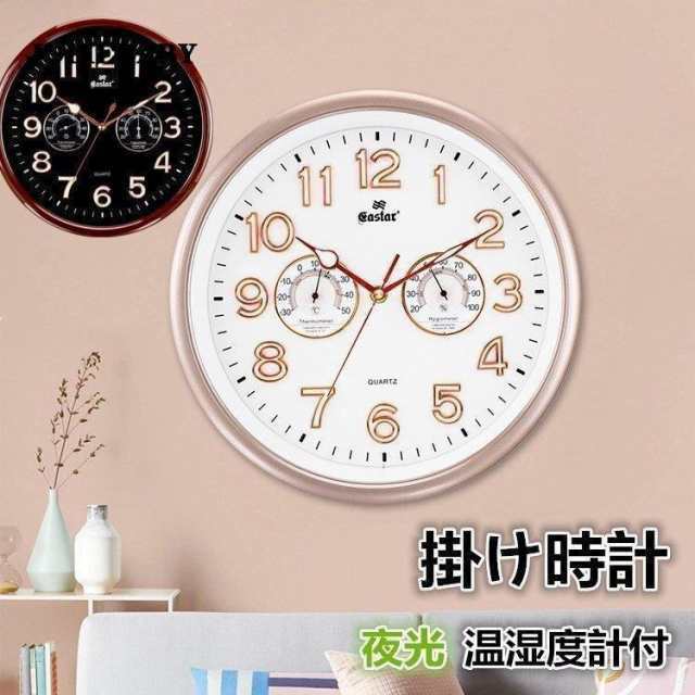 掛け時計 夜光時計 壁掛け時計 夜光 壁掛け 温度 湿度 オシャレ 時計 北欧 デジタル 静音 連続秒針 温湿度計付き 非電波 リビング 新築祝い 子供部屋