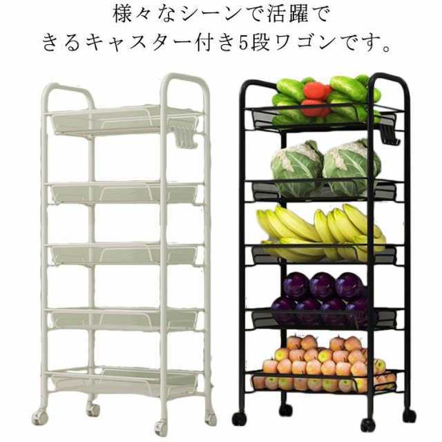 ワゴン 収納ラック キャスター付き 5段 スチールラック キッチンワゴン マルチワゴン 北欧 おしゃれ バスケット 棚 収納かご メッシュカゴ キャス