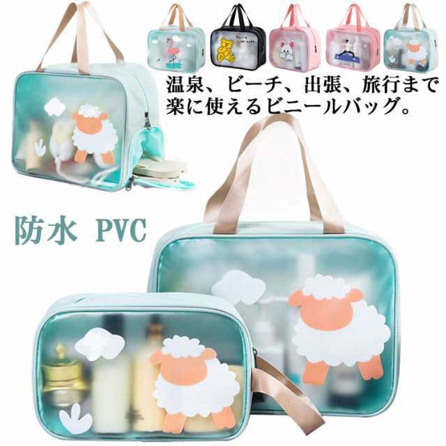 取っ手付き クリアコスメポーチ バッグインバッグ 大容量 透明 ビニール 小物入れ ポーチ PVC 旅行 防水 トラベルポーチ かわいい おしゃれ コンパクト プール 海 ジム 温泉 収納バッグ 持ち運び便利 化粧ポーチ
