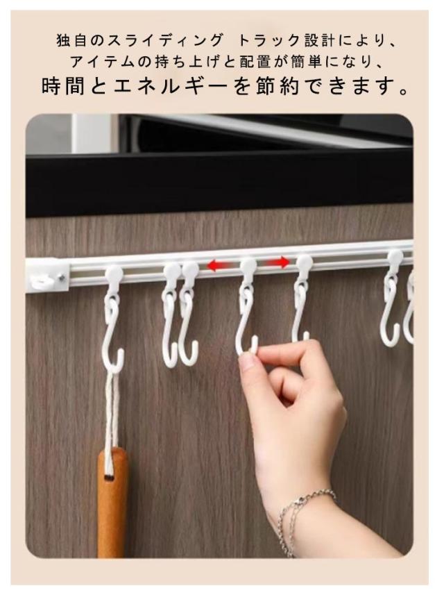3個セット キッチンフック スライドフック スライド式 スライドレール フック S字型 スライディング トラック フックハンガー キャビネットドアバックフック クローゼット 強力粘着 吊り下げラック 引き出し 壁掛け 収納 送料無料