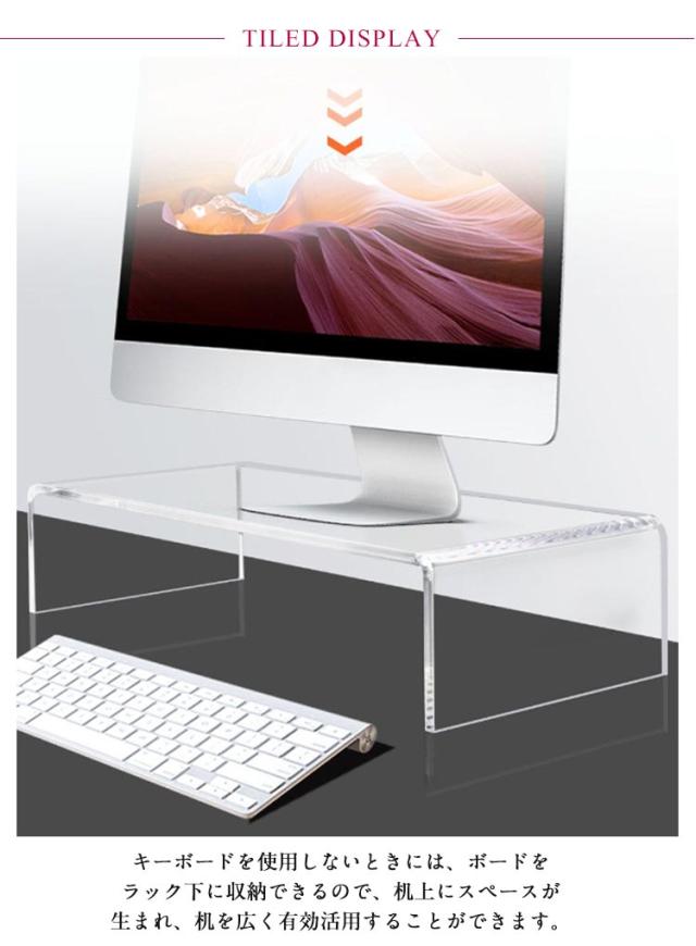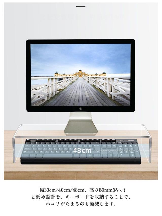 モニター台 机上台 アクリル モニタースタンド 幅30cm/40cm/48cm 高さ8cm 厚さ8mm アクリル素材 透明 クリアー 組立不要 パソコン台 机上台 PCモニター ディスプレイ 液晶モニター キーボード収納 卓上 机