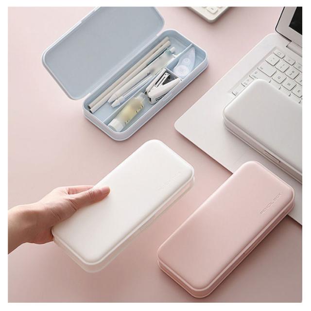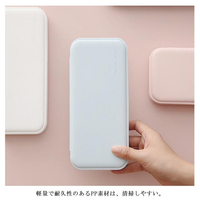 | シンプルでスタイリッシュな筆箱。 仕切りがあり、消しゴム、ハサミ、定規、修正テープなどを分類できます。 蓋の開閉はとても楽チンです。 スリムなデザインは持ち運びに便利。 軽量で耐久性のあるPP素材は、清掃しやすい。 筆記用具入れにはもちろん、アクセサリー入れやメイク道具入れとしてもおすすめ。 | |