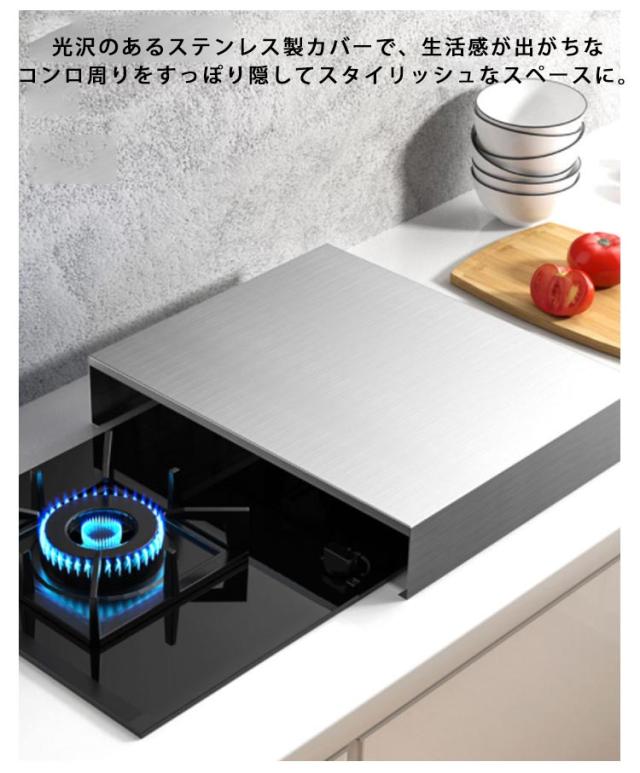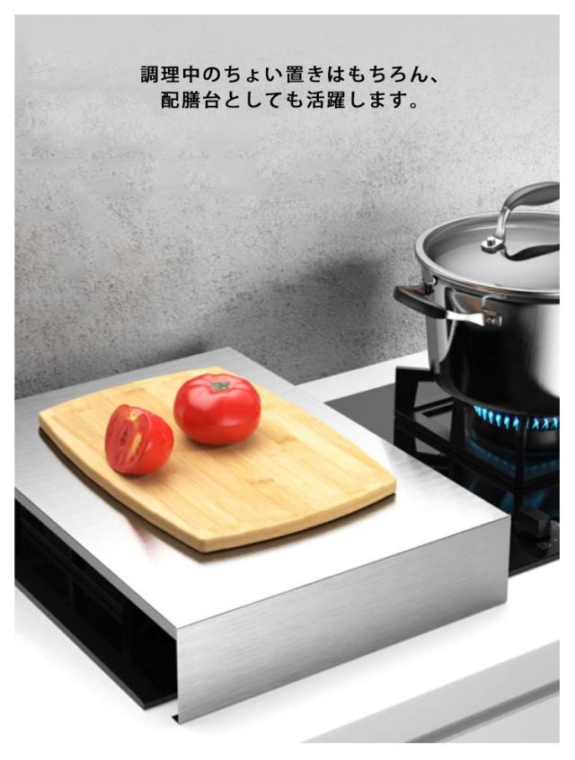 コンロ上 作業台 レンジカバー コンロカバー IHコンロカバー ガスコンロ対応 作業スペース ステンレス 鍋置き IHコンロ台 作業台 油ハネガード 食材置き ガスレンジカバー 一時置き 調理スペース ガスコンロカバー IH調理器 省スペース キッチン収納 幅35cm