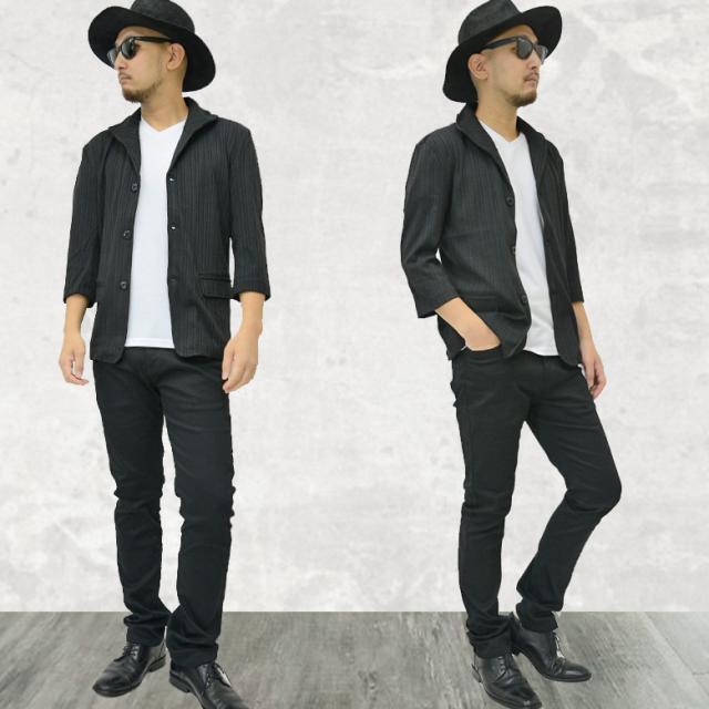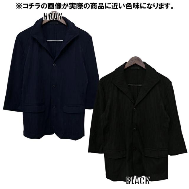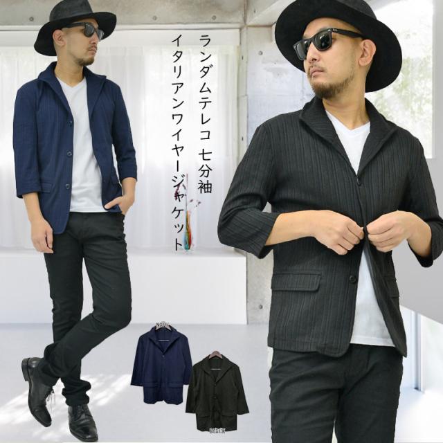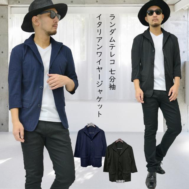 【閉店セール】イタリアンカラーランダム 7分袖ジャケット 66422 ビター系 BITTER アウター スタンドカラー 凹凸 ワイヤー入り 細身 スリム キレイめジャケット メンズ イタリアンカラー ランダムテレコ ビター系 BITTER ランダムテレコイタリアンカラ-