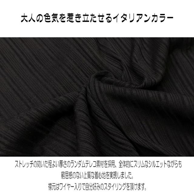襟の形を自由に変化できるワイヤー入りで、襟元を自分好みにアレンジ可能。