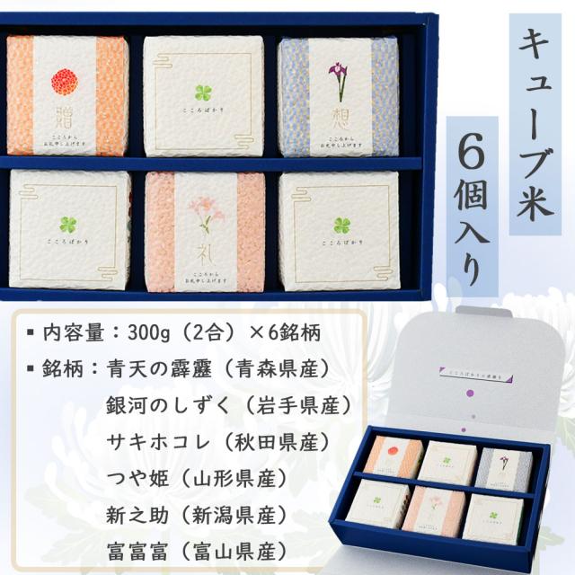 お米 香典返し 法事 法要 お供え お彼岸 お盆 お返し ギフト 『 香典返し キューブ米 300g(2合)×6銘柄セット 』