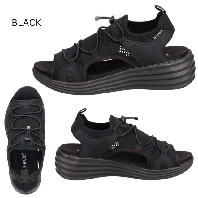 | エル スポーツ ELLESPORT レディース サンダル ESP12598 メッシュデザインニット 軽量 厚底 ゴム紐 マドラス |