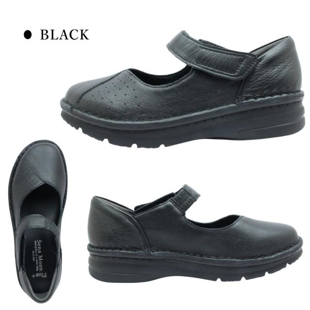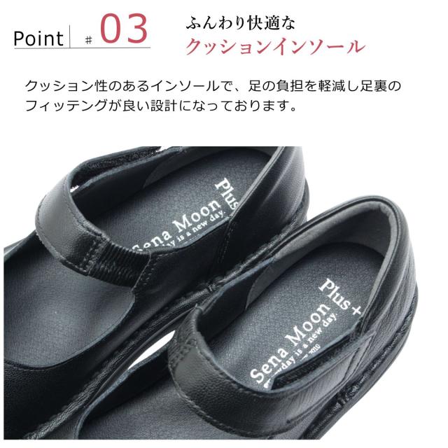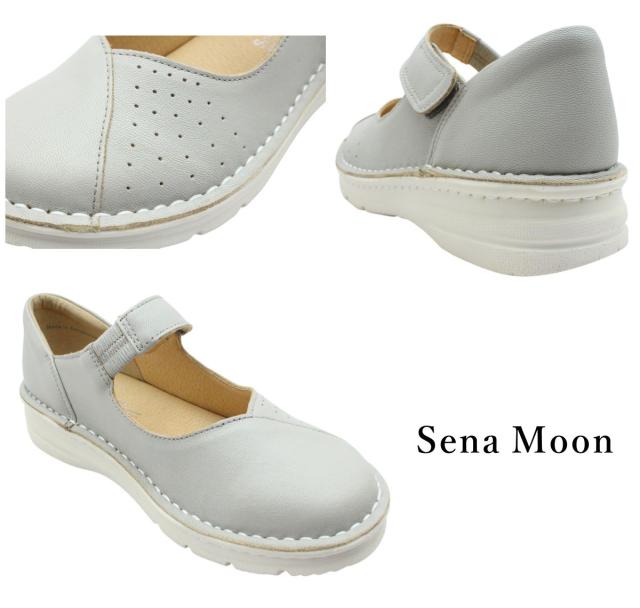 セナムーン Sena Moon レディース レザー カジュアルシューズ 3761 甲ストラップ 幅広4E 厚底 本革 ウォーキング スニーカー スリッポン パンプス 婦人靴