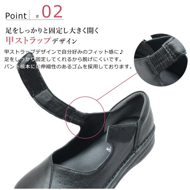 | セナムーン Sena Moon レディース レザー カジュアルシューズ 3761 甲ストラップ 幅広4E 厚底 本革 ウォーキング スニーカー スリッポン パンプス 婦人靴 |