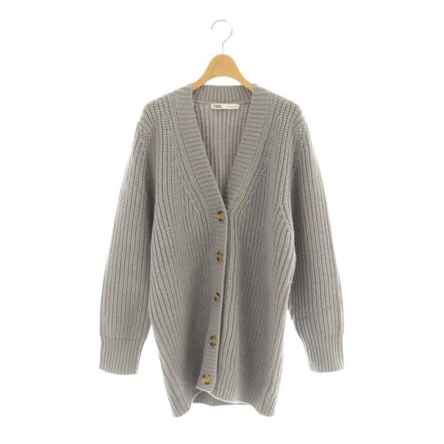 【中古】ザラ ZARA ローゲージニット カーディガン 長袖 Vネック L 紫 パープル /AT ■OS レディース